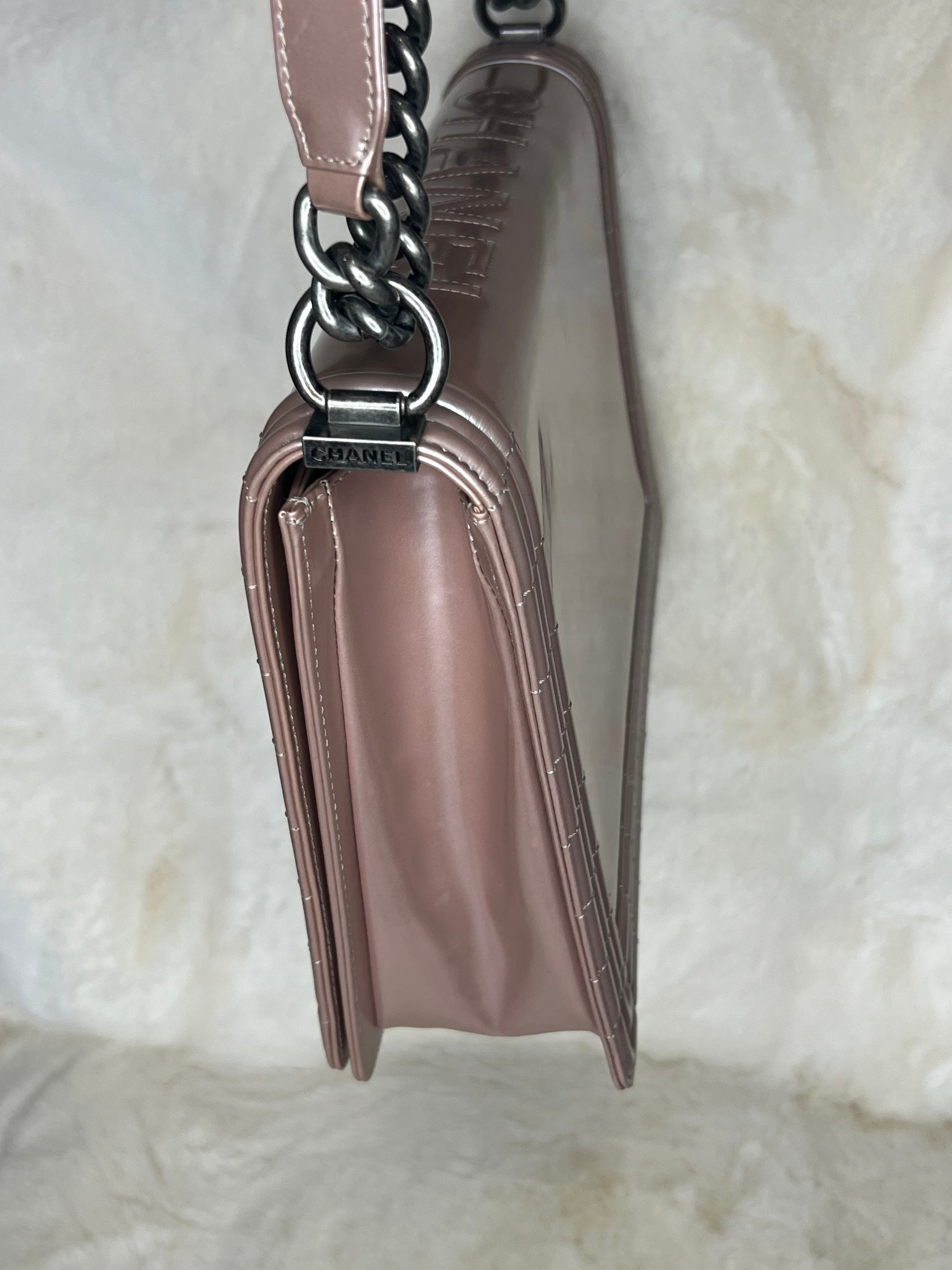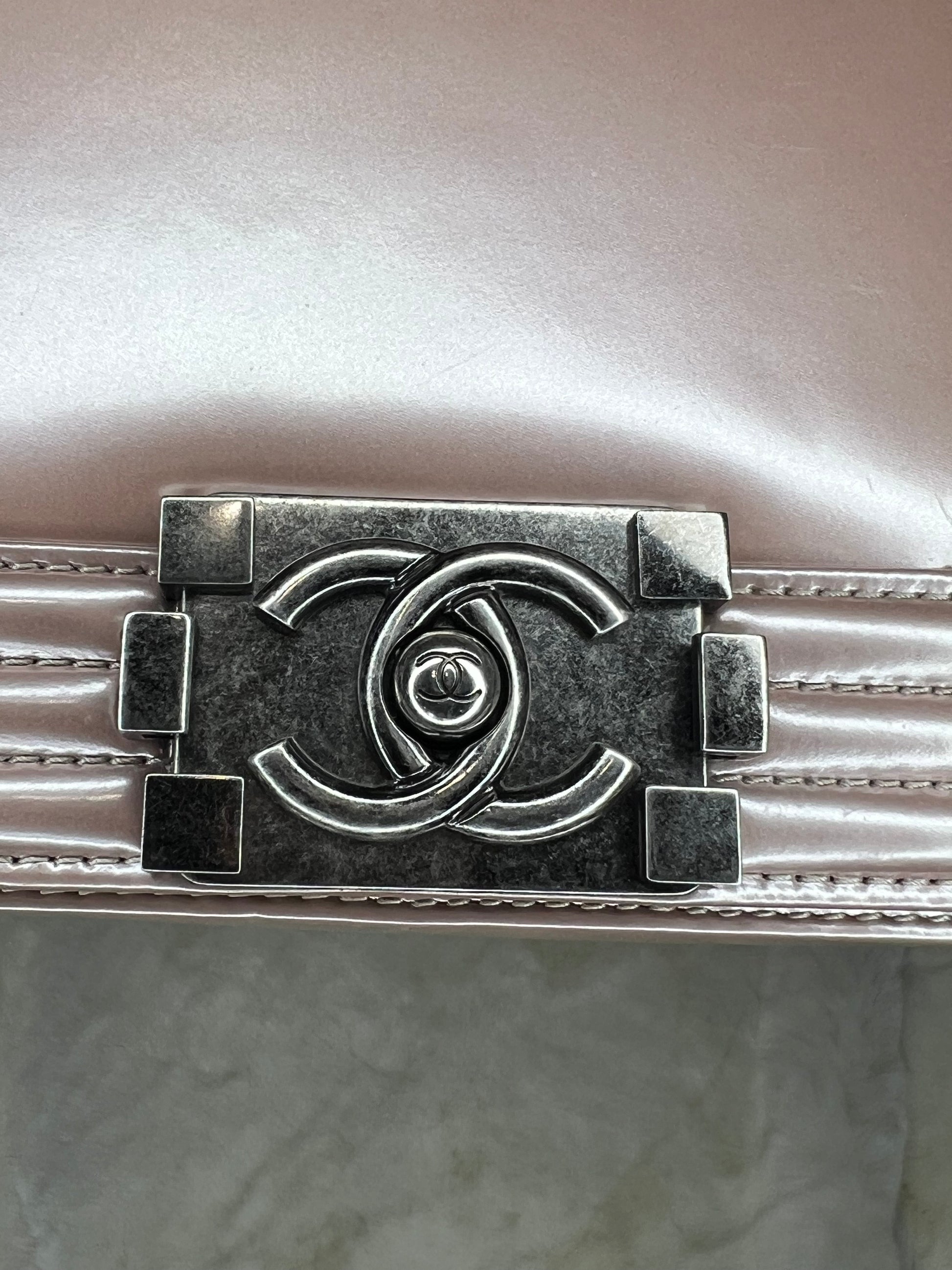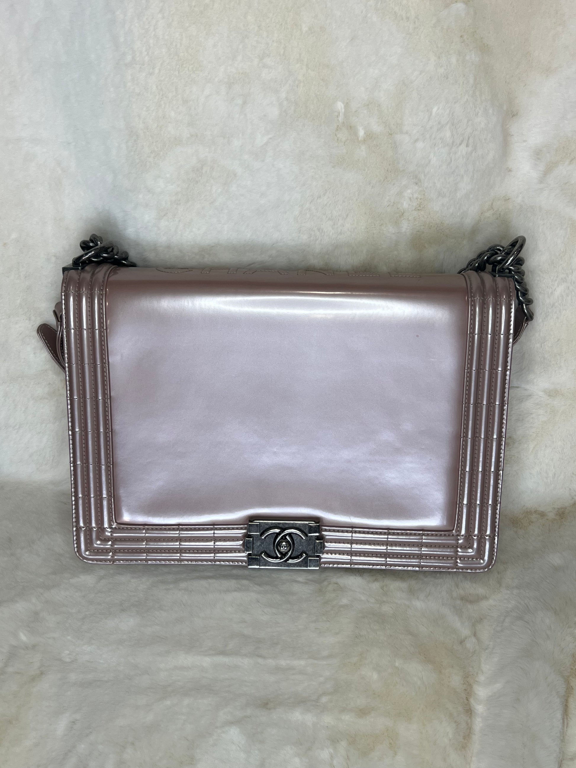 Introducing the Chanel Iridescent Glazed Calfskin Large Boy Flap in Light Pink – a stunning shoulder bag that radiates luxury with every detail. This beauty is the perfect balance of playful elegance and bold sophistication, making it the ideal accessory for any occasion. Whether you're headed to brunch with friends, a chic night out, or just want to add some luxury to your everyday look, this Chanel piece has you covered.